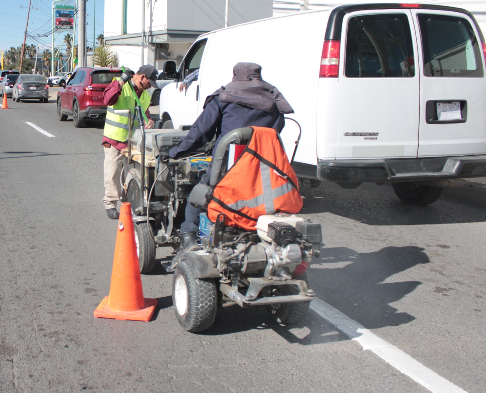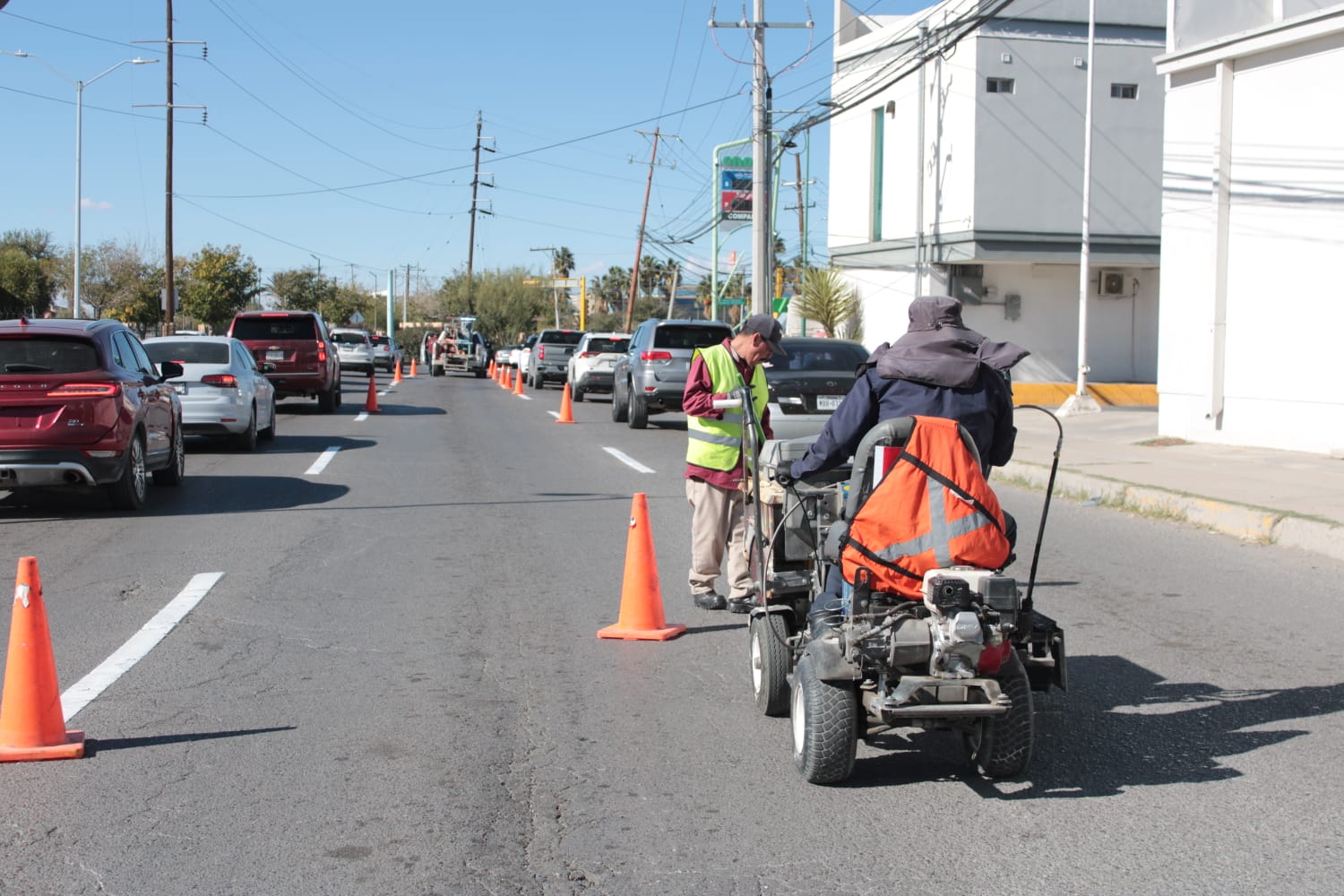 La Coordinación General de Seguridad Vial llevó a cabo trabajos de renovación de la división de carriles sobre el bulevar Tomás Fernández, en el tramo que conecta desde la calle Los Portales hasta la avenida Vicente Guerrero.