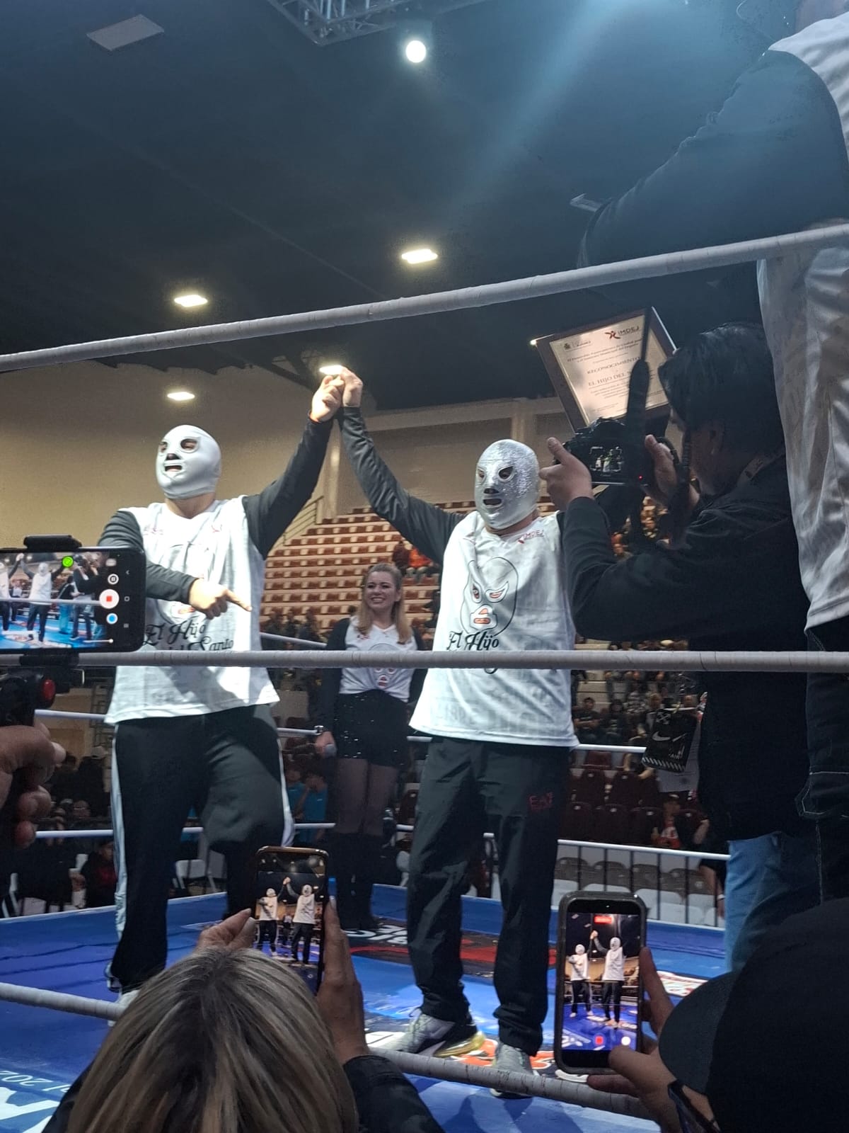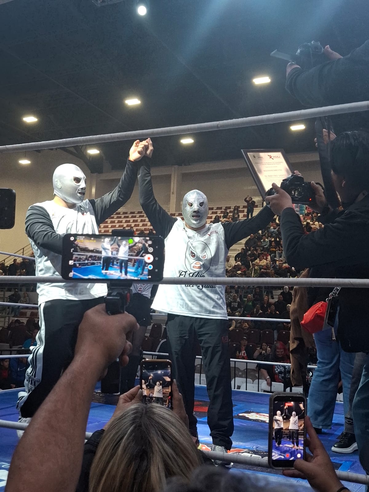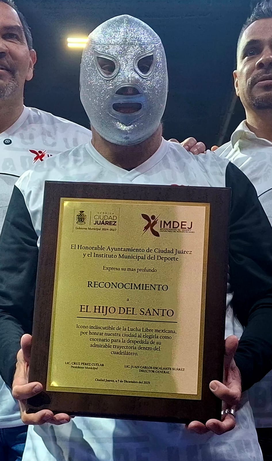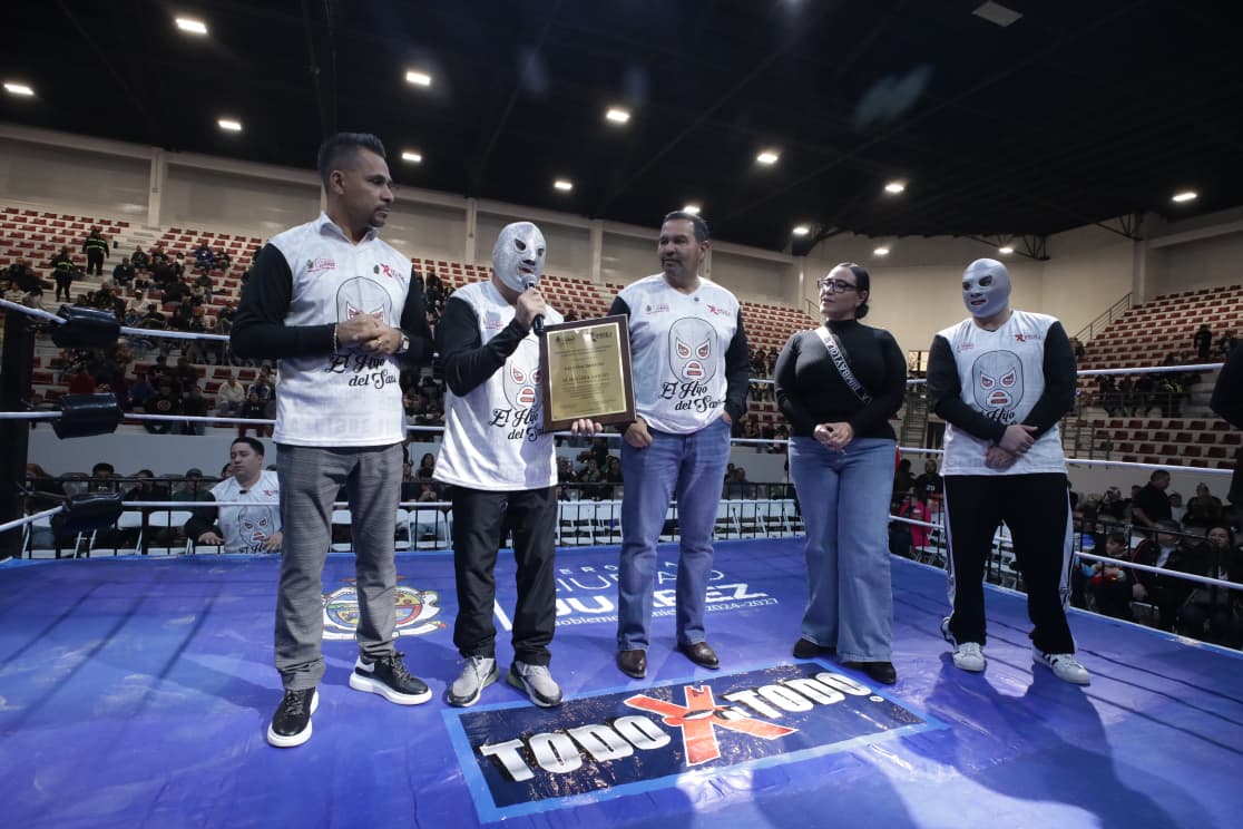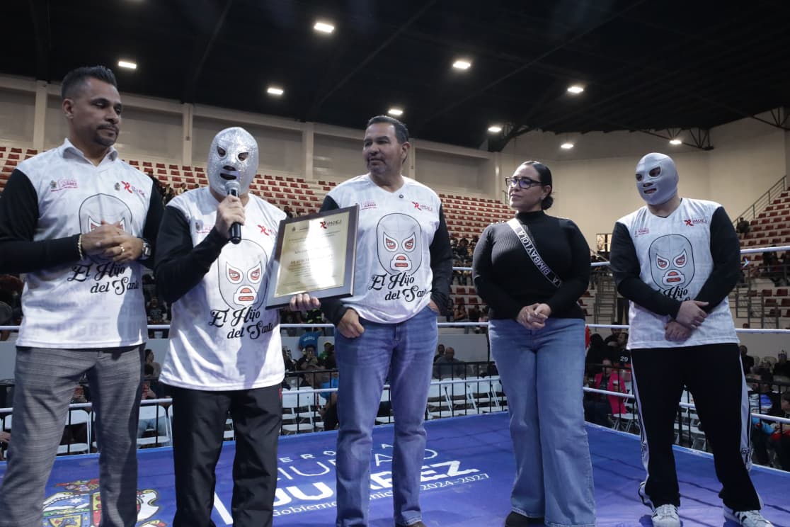 Durante el evento, el Presidente Municipal Cruz Pérez Cuéllar entregó al ícono de la lucha libre una placa en reconocimiento a su trayectoria y por elegir a Juárez como una de las sedes para despedirse de los cuadriláteros. El Hijo del Santo se mostró visiblemente emocionado y recordó las grandes batallas que vivió en este recinto, destacando el cariño de la afición juarense a lo largo de generaciones.